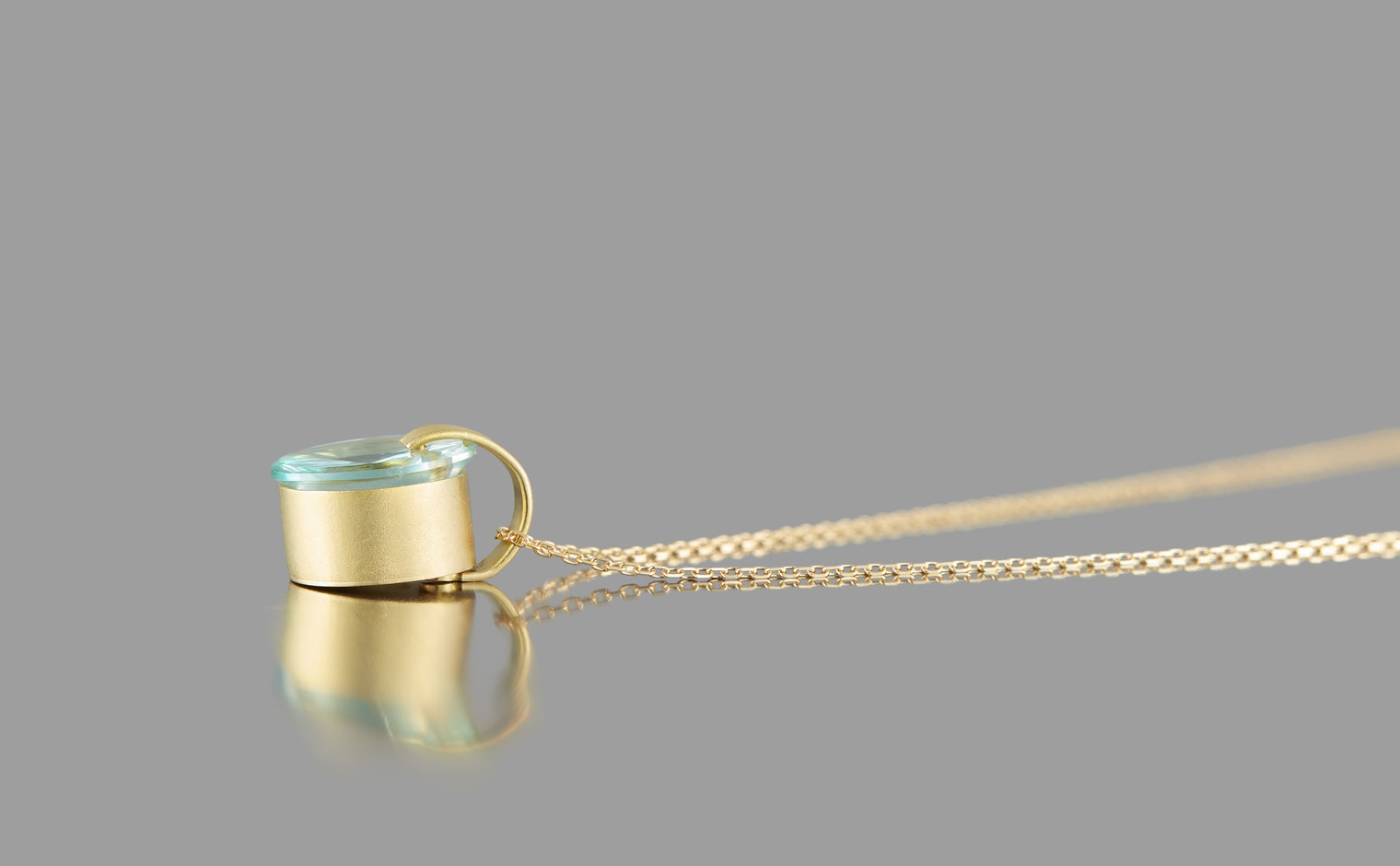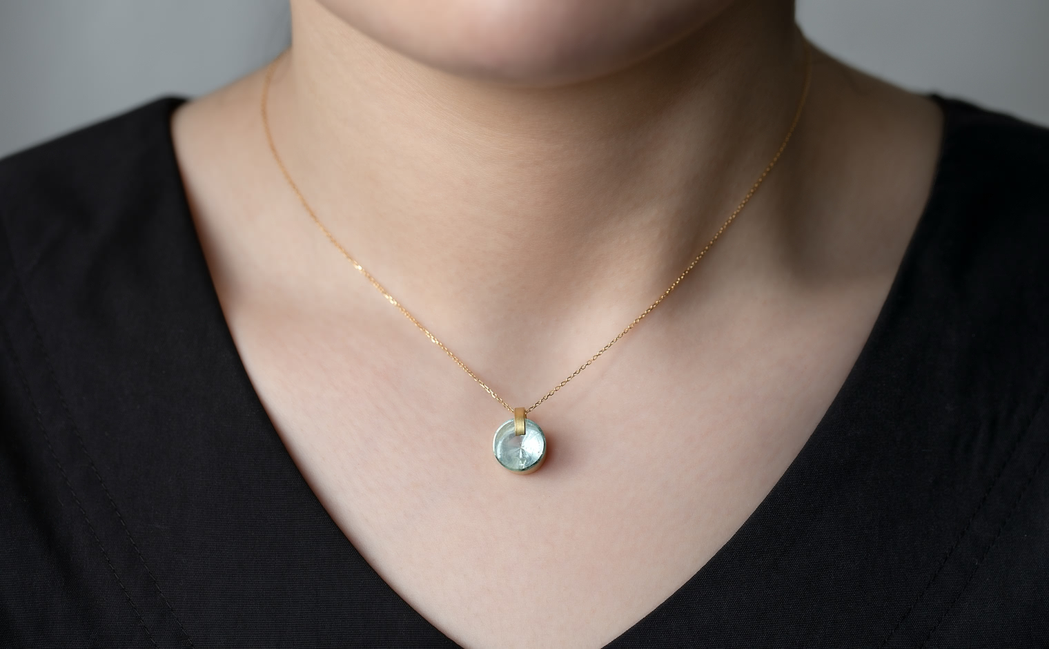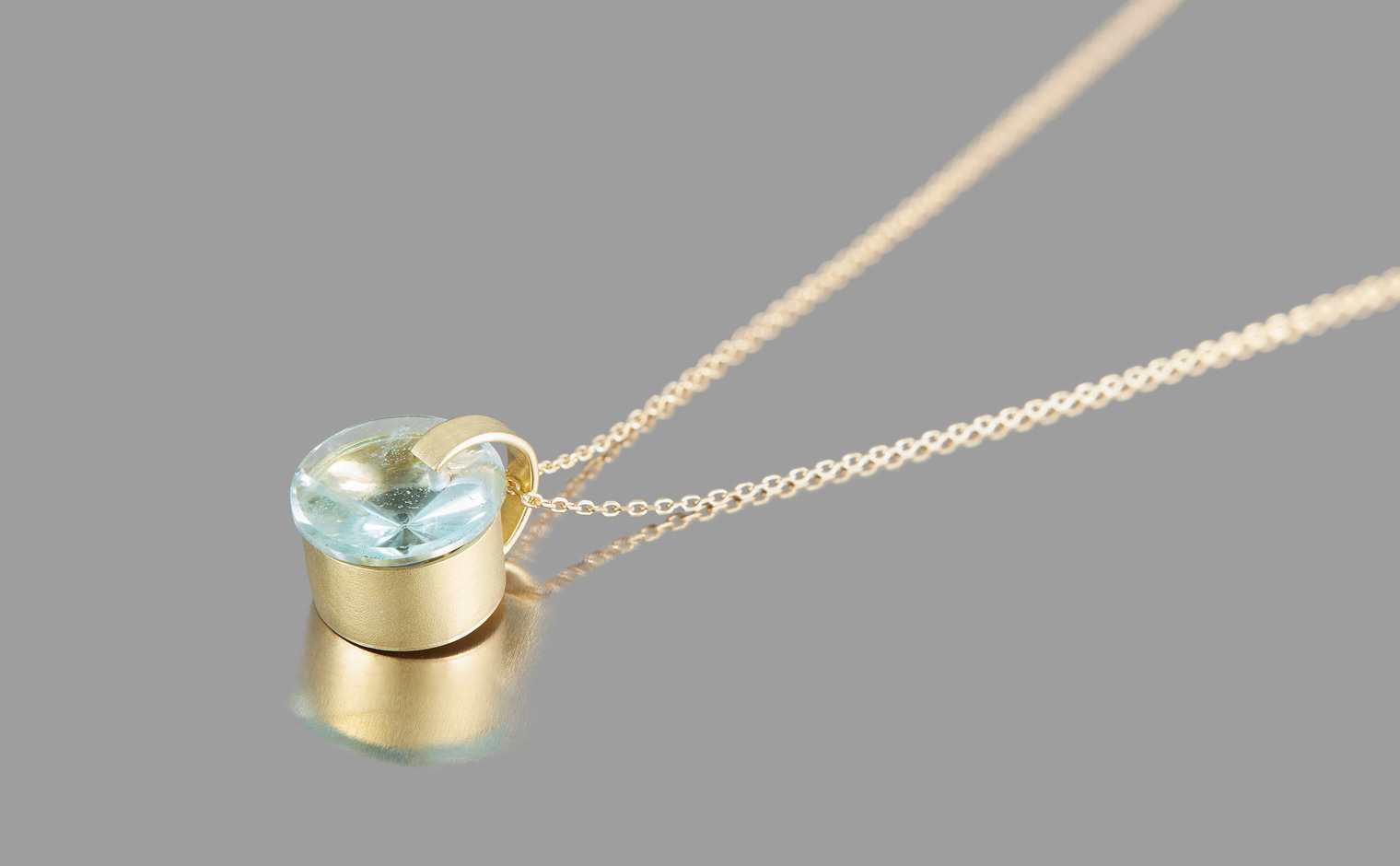 Indulge in glacial serenity with the Arctic Aquamarine Necklace. Expertly handcrafted, this passion piece features a gleaming, ice-blue round Aquamarine center stone within a handcrafted gold setting, suspended from an adjustable yellow gold chain.The Arctic Aquamarine Necklace is a true masterpiece of exceptional artistry and exquisite design.