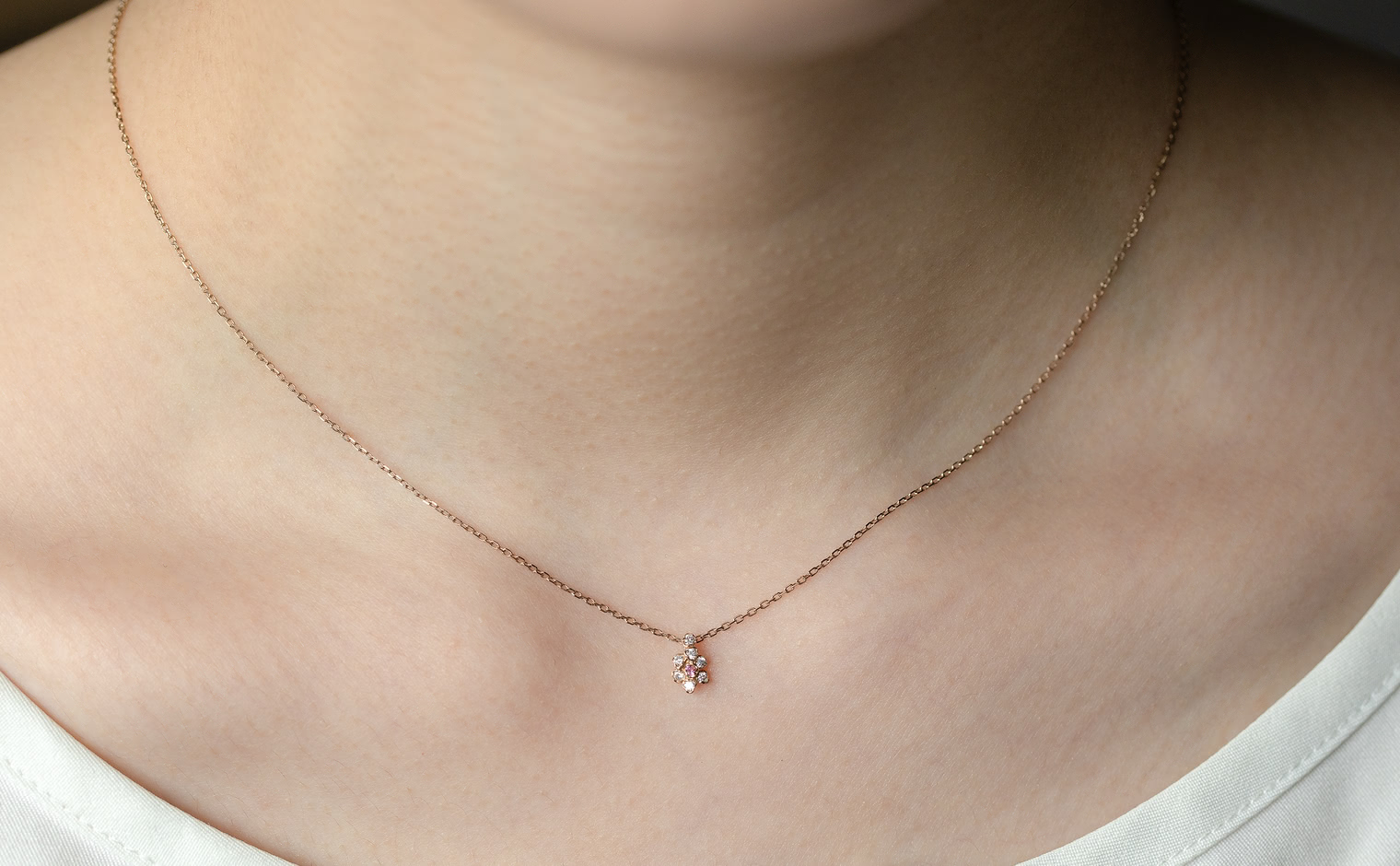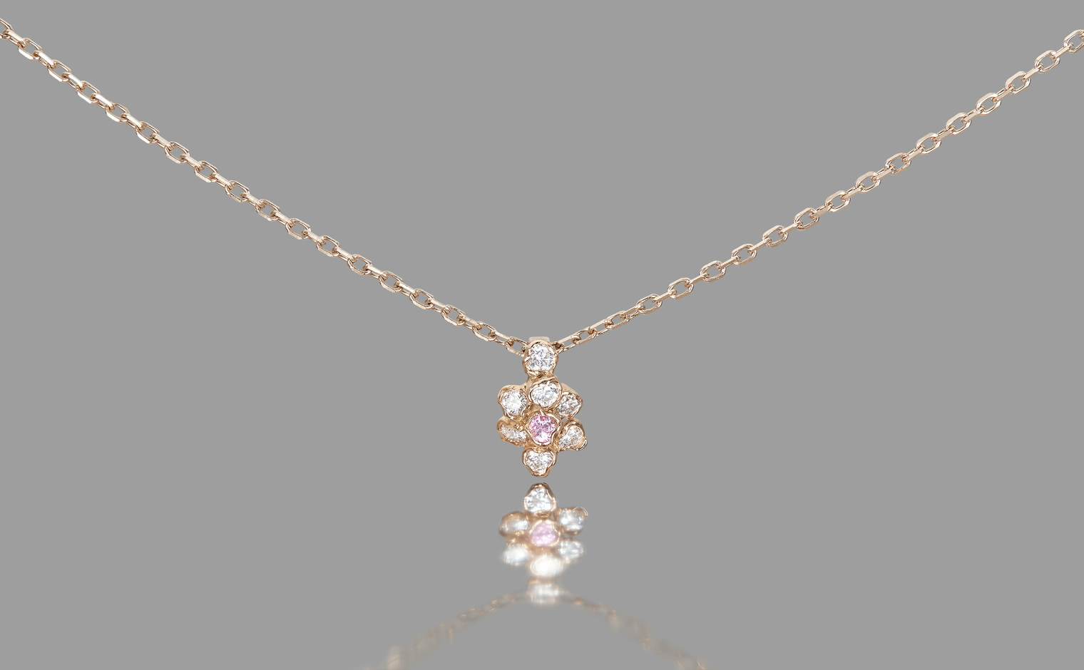 A blush of pink among the snowy petals of radiant whites. With its ever-glowing delicate pink sapphire meticulously placed in the middle of brilliant white diamonds like a pistil of a newly blossomed bud on the First of Spring, the Bloom Necklace-Sapphire brings a spark of love and hope for all seasons.