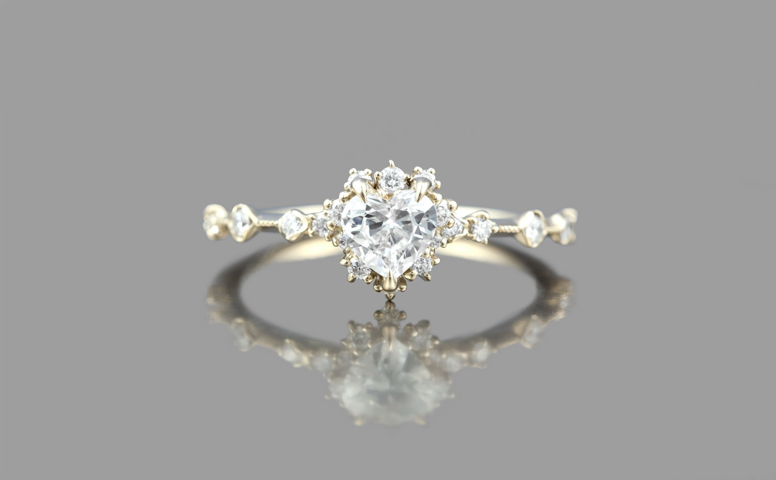 Once in a while, there is a ring that speaks directly to your heart. This diamond, cut to reflect such a heart, sparkles and catches the light every which way you move.