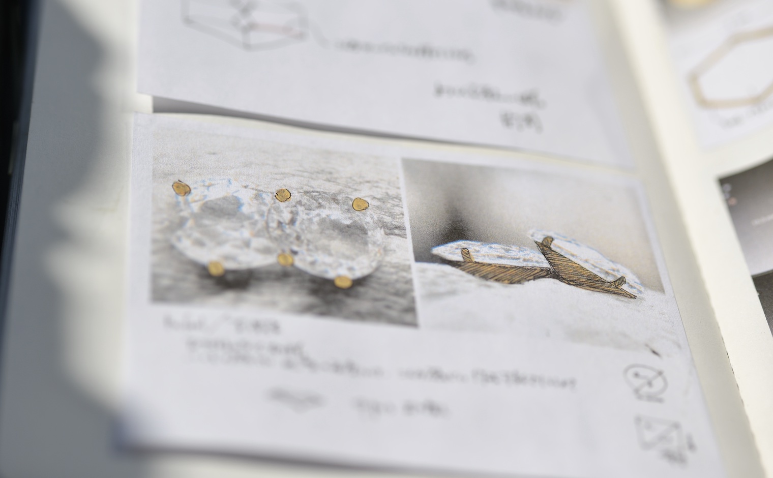 表面張力にたゆたう色、こぼれ落ちそうな一杯の光。 石は、光の味を宿すものとして。 セッティングは、まるで光を受けとめる器のように。 目にするだけでなく、味わえるような感覚を映し出す作品たち。