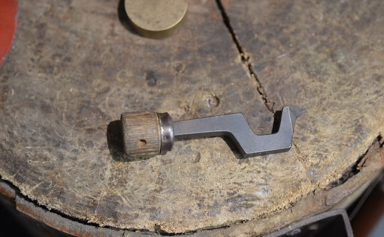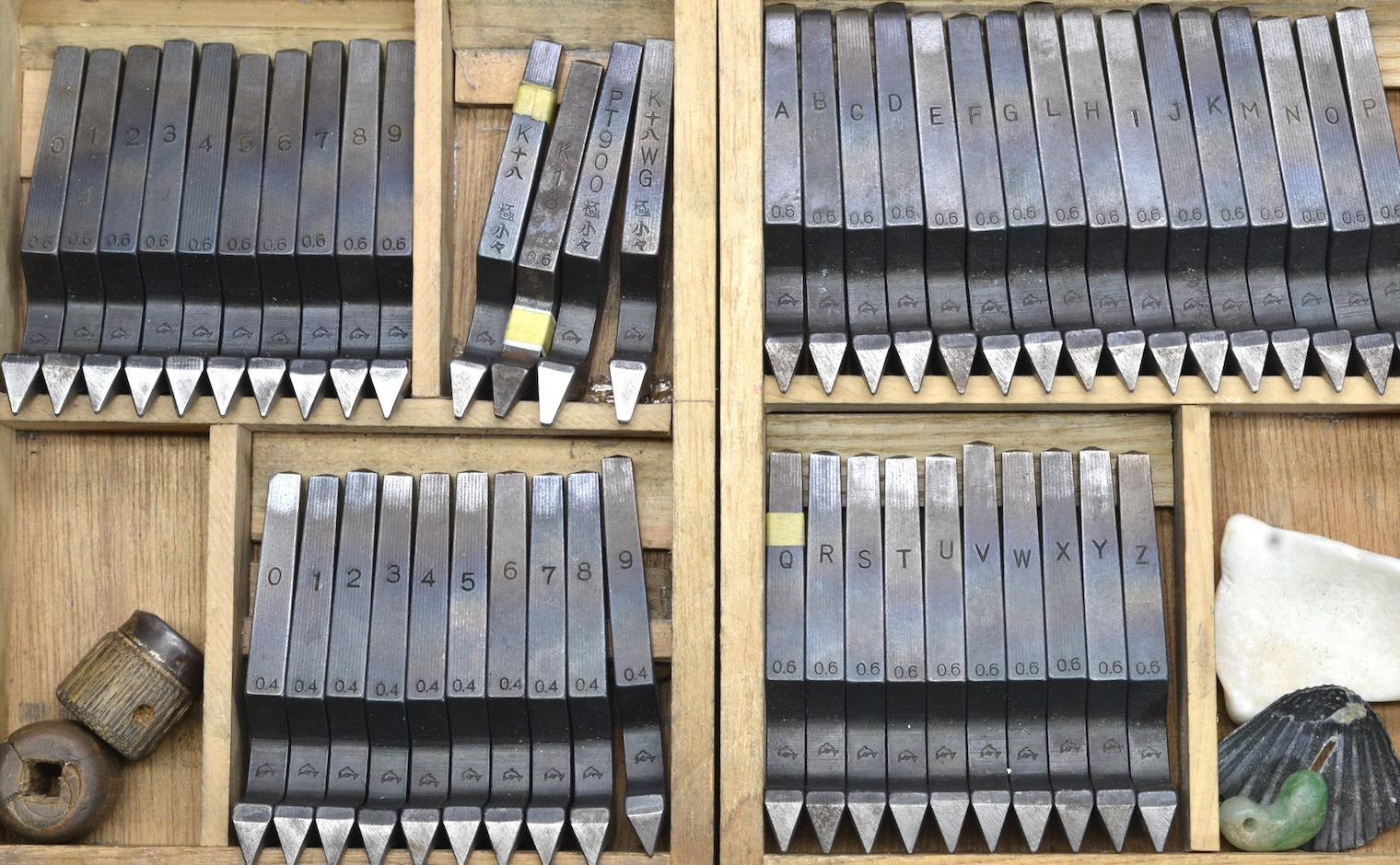 刻印を一文字づつ、手押しで打刻していく