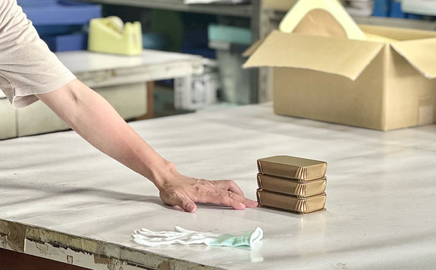 kataokaでは昔のドラジェ(祝菓子)箱を手作りで