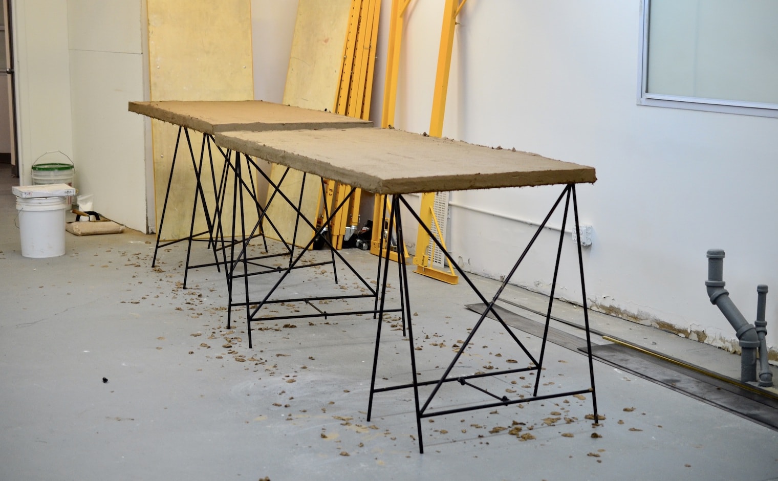 土壁のテーブルを自作で左官したり